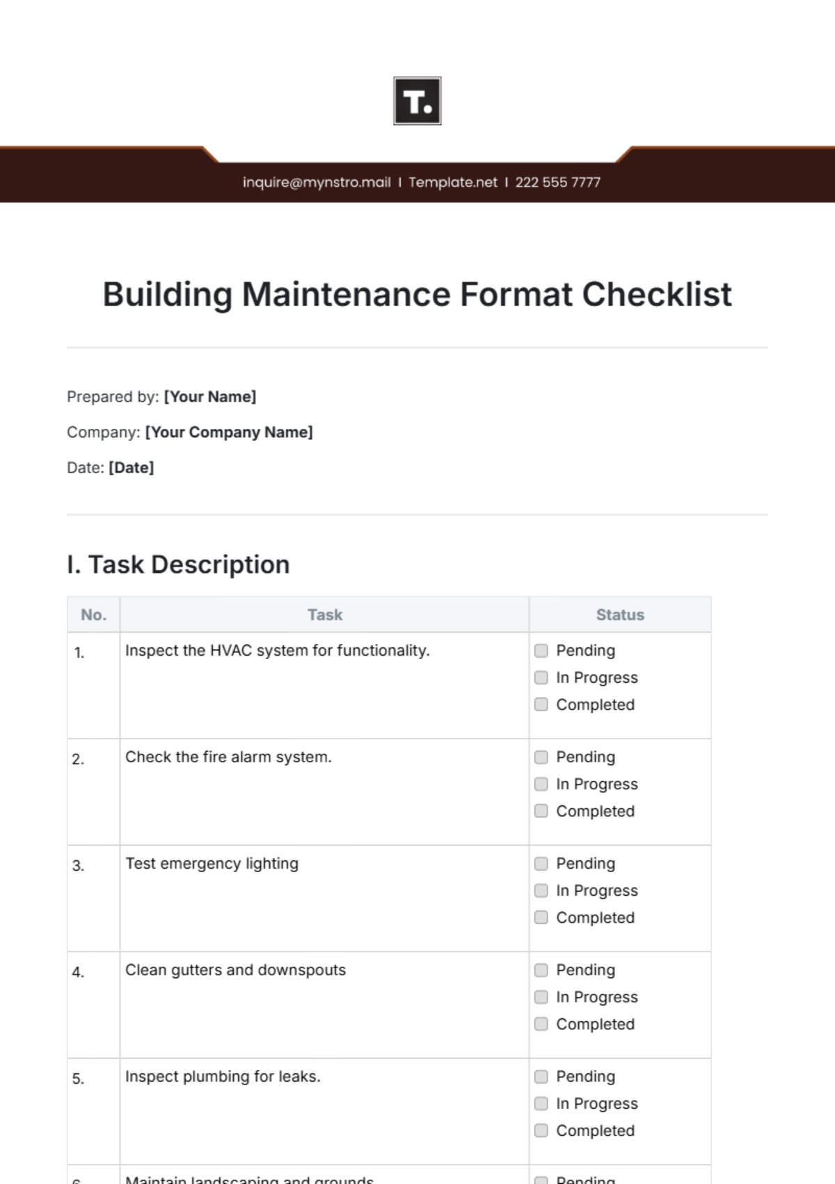 Whether you prefer to keep a digital copy of your checklist on your computer or smartphone or print out a physical copy to hang on the wall, having a customizable template can make it easy to stay organized and ensure that your building is well-maintained.