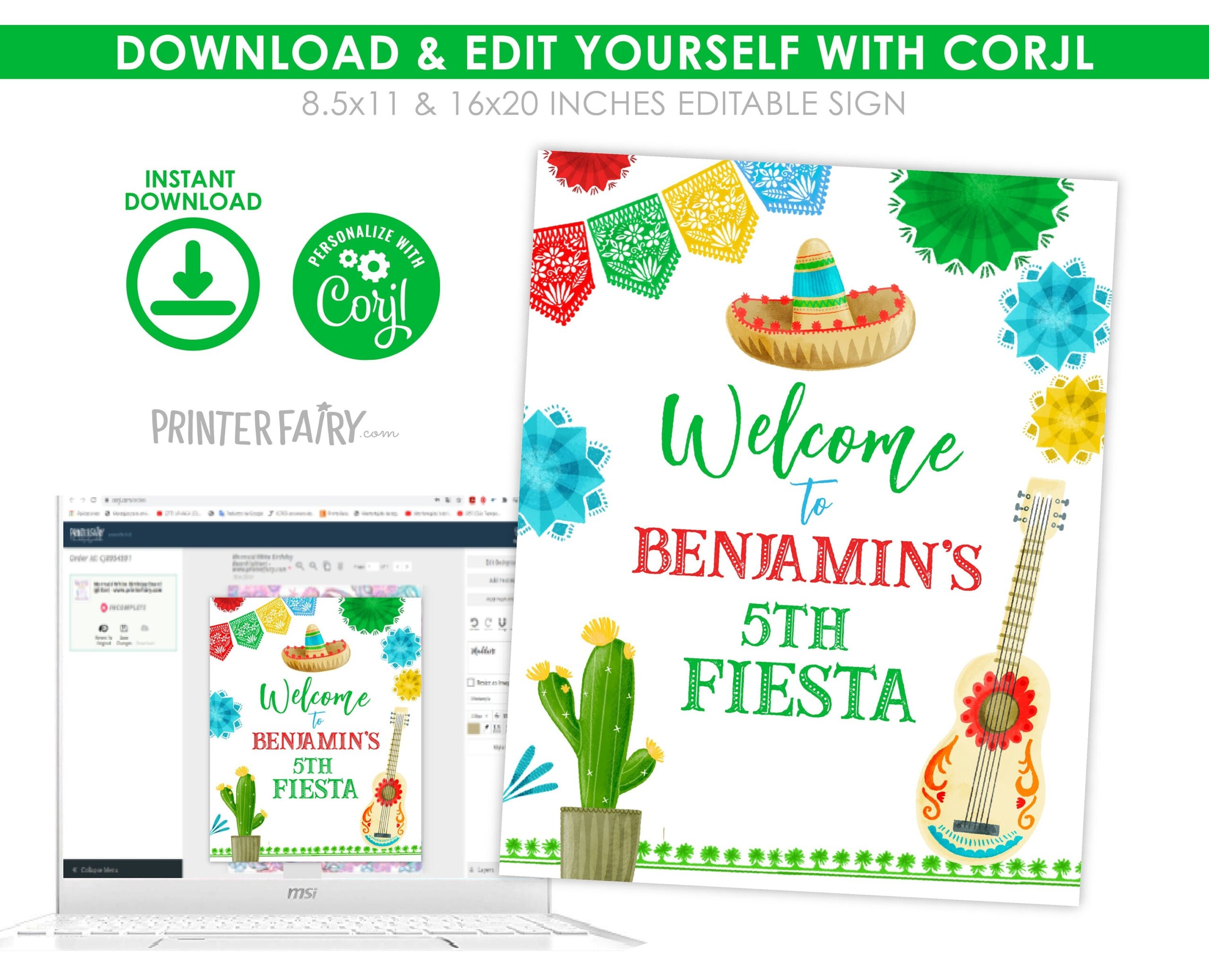 Fiesta Birthday Party Welcome Sign Editable Mexican Fiesta Invitation Fiesta Decorations Cinco De Mayo Birthday Time Two Siesta Three esta Etsy