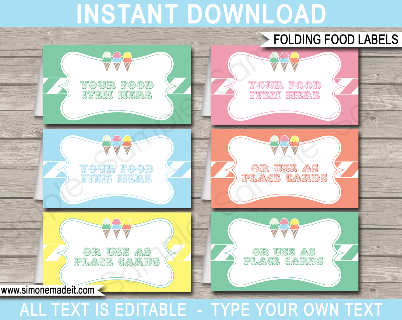 Ice Cream Party Food Labels Place Cards Ice Cream Theme Party