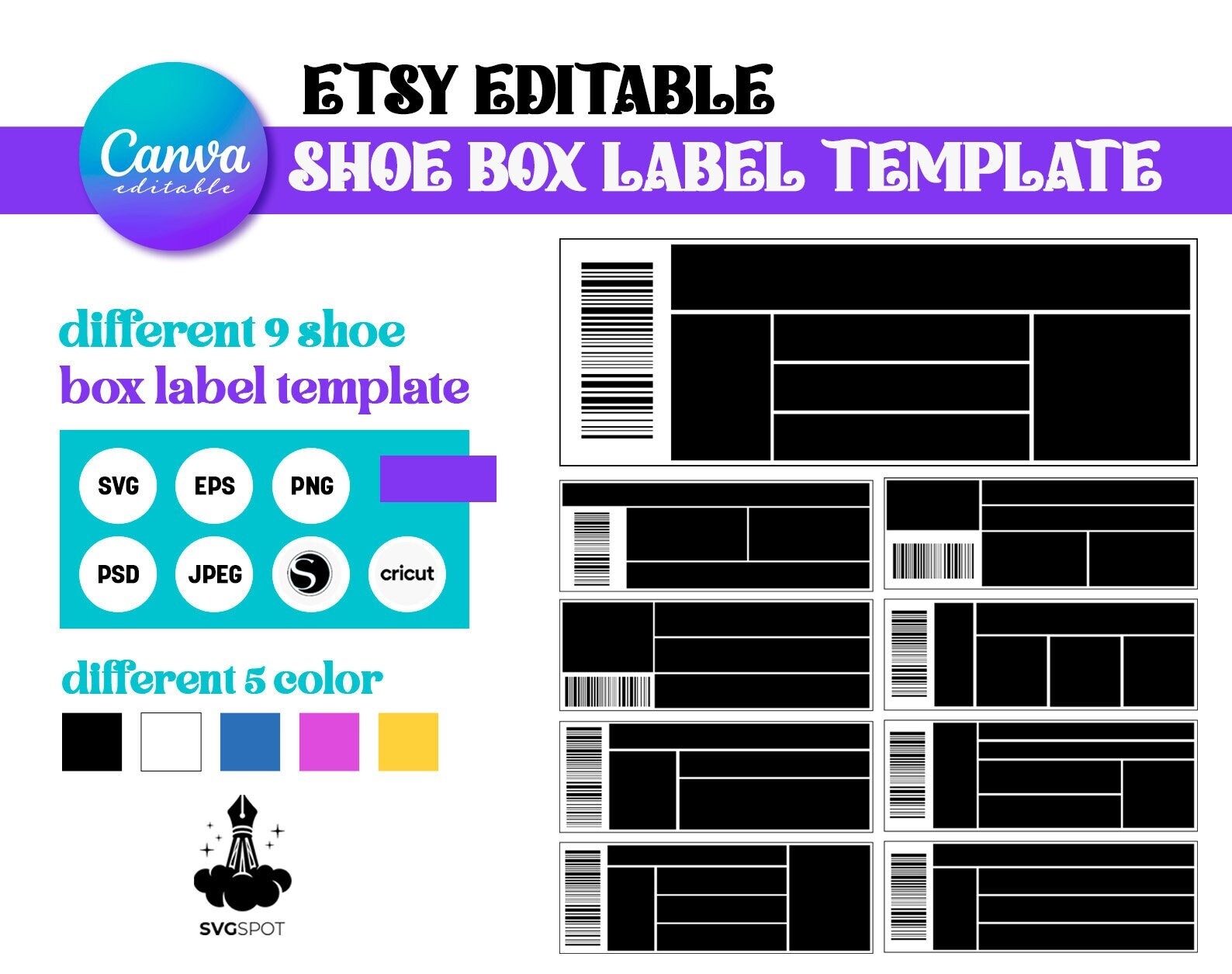 Shoe Box Label Template Template SVG Shoe Box Label SVG Printable Template Customize Label Template Instant Download All Colors Etsy
