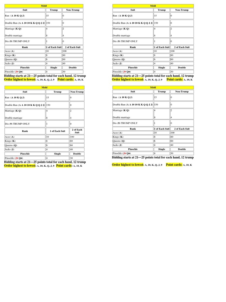 Double Deck Pinochle Cheat Sheet Fun Card Games Card Games Worksheets Library