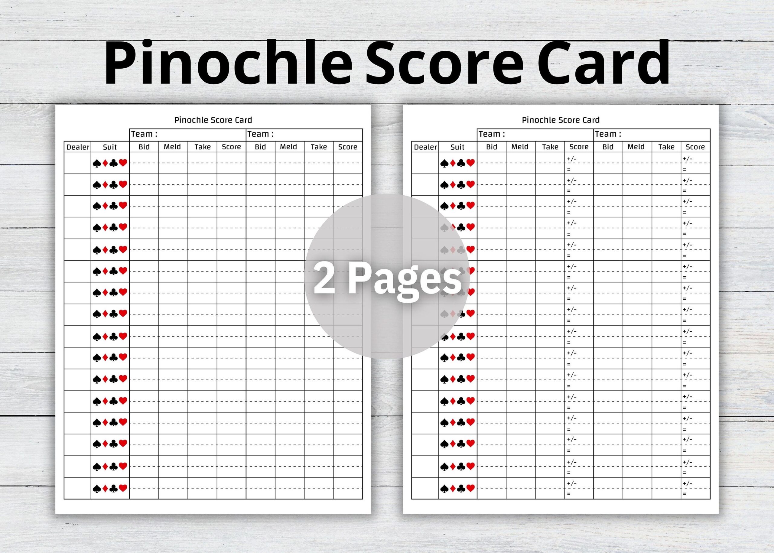 Pinochle Score Sheet Pinochle Score Card Printable Pinochle Game Score Sheet Pinochle Game Etsy