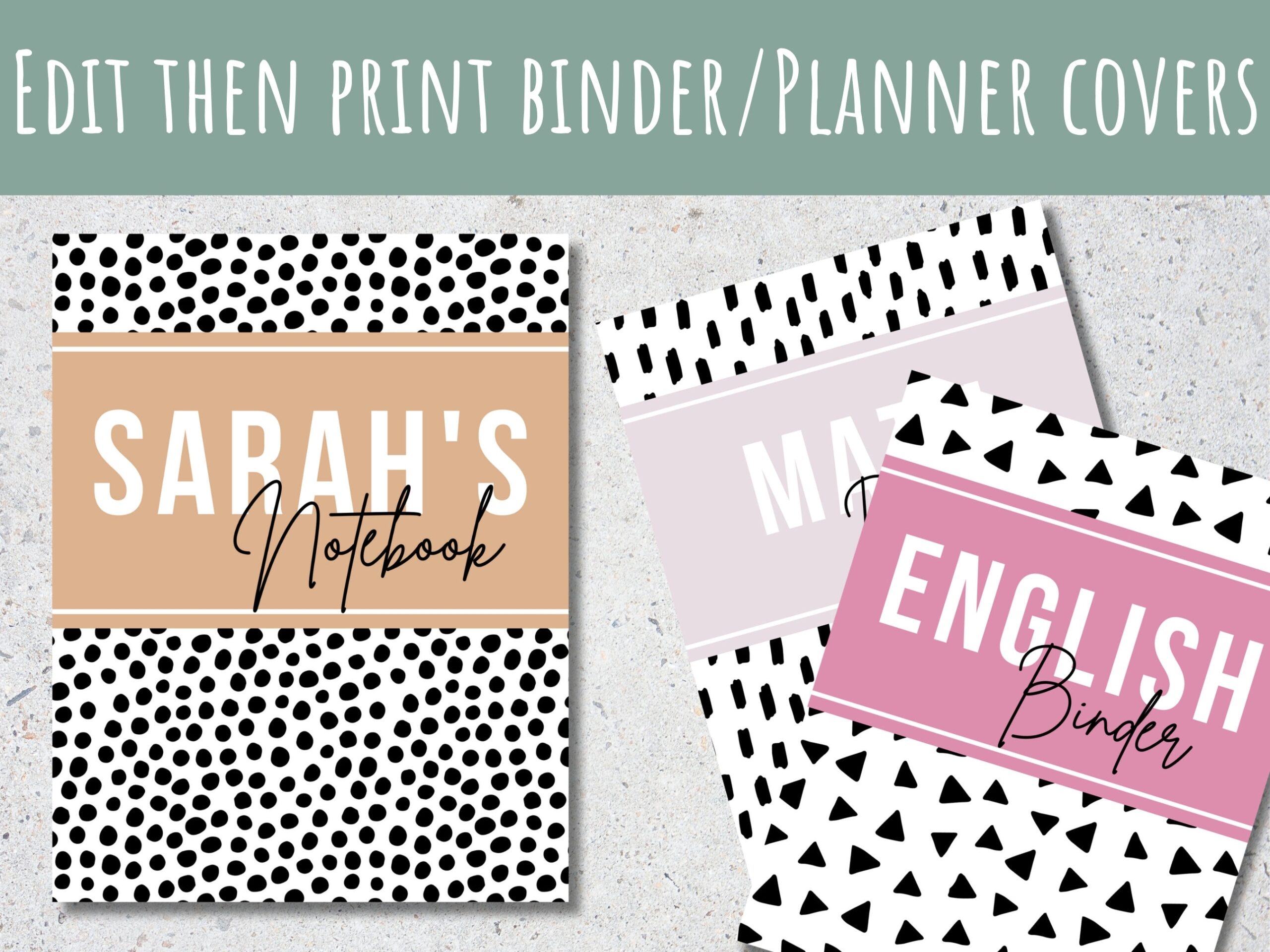 Editable And Printable Binder And Planner Covers Custom School Supplies Custom Planner Cover Canva Template Design Binder Spines Print Etsy