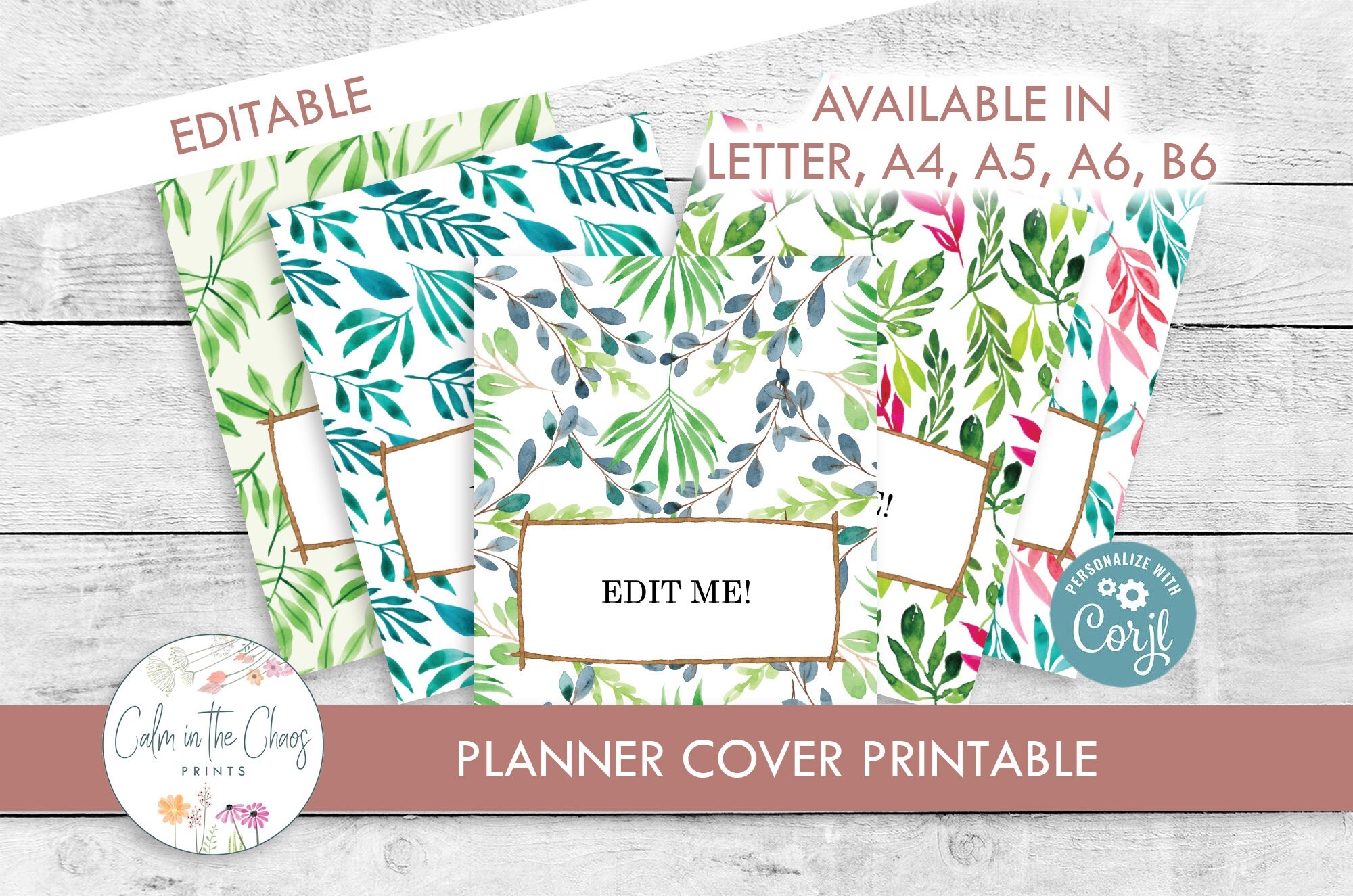 Planner Cover Printable Beautiful Floral And Leaves Design Editable Binder Covers Personalized Planner Letter A4 A5 A6 B6 Sizes Etsy