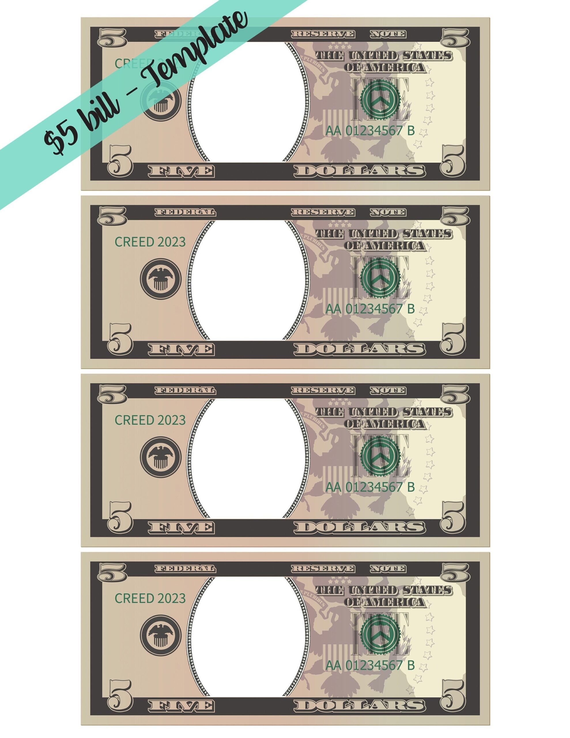 With these templates, you can unleash your creativity and have a blast customizing your very own 5 dollar bills. They are great for teaching kids about money or for creating personalized gifts for friends and family. The possibilities are endless!