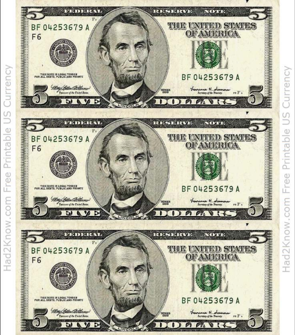 Printable Editable Real Money Templates 5 Dollar Bill