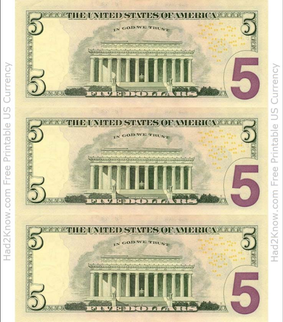 5 Dollar Bill Template Letter Page With 4 Real Size Dollar Bills front And Back Look A Like 5 Dollar Bill Etsy