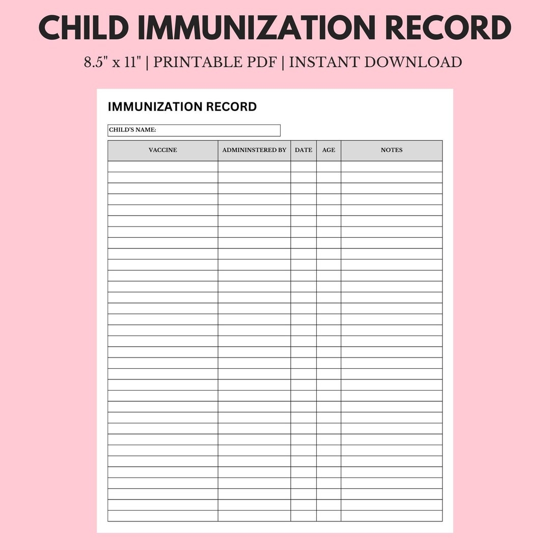 Printable Immunization Record Template Printable Vaccine Log Family Medical Binder Vaccine History Grab And Go Page Shot Tracker Etsy