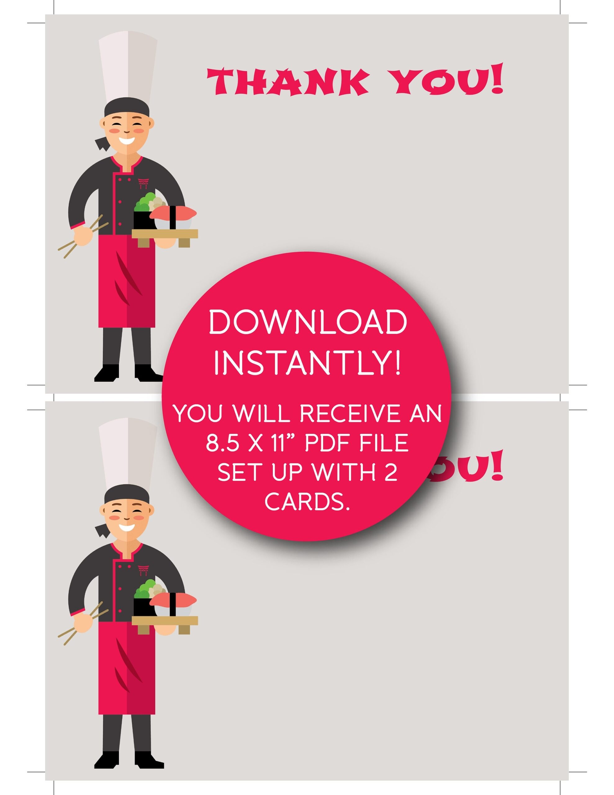 Hibachi Birthday Party Dinner Thank You Card Asian Steakhouse Dinner INSTANT DOWNLOAD Printable File Digital Thank You Card DIY 0070 Etsy