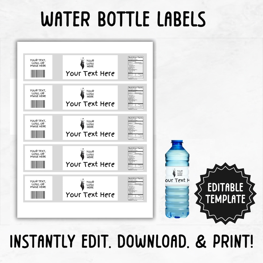 Water Bottle Label Template Editable Water Bottle Sticker Label Printable Water Bottle Party Favor Wraps Etsy