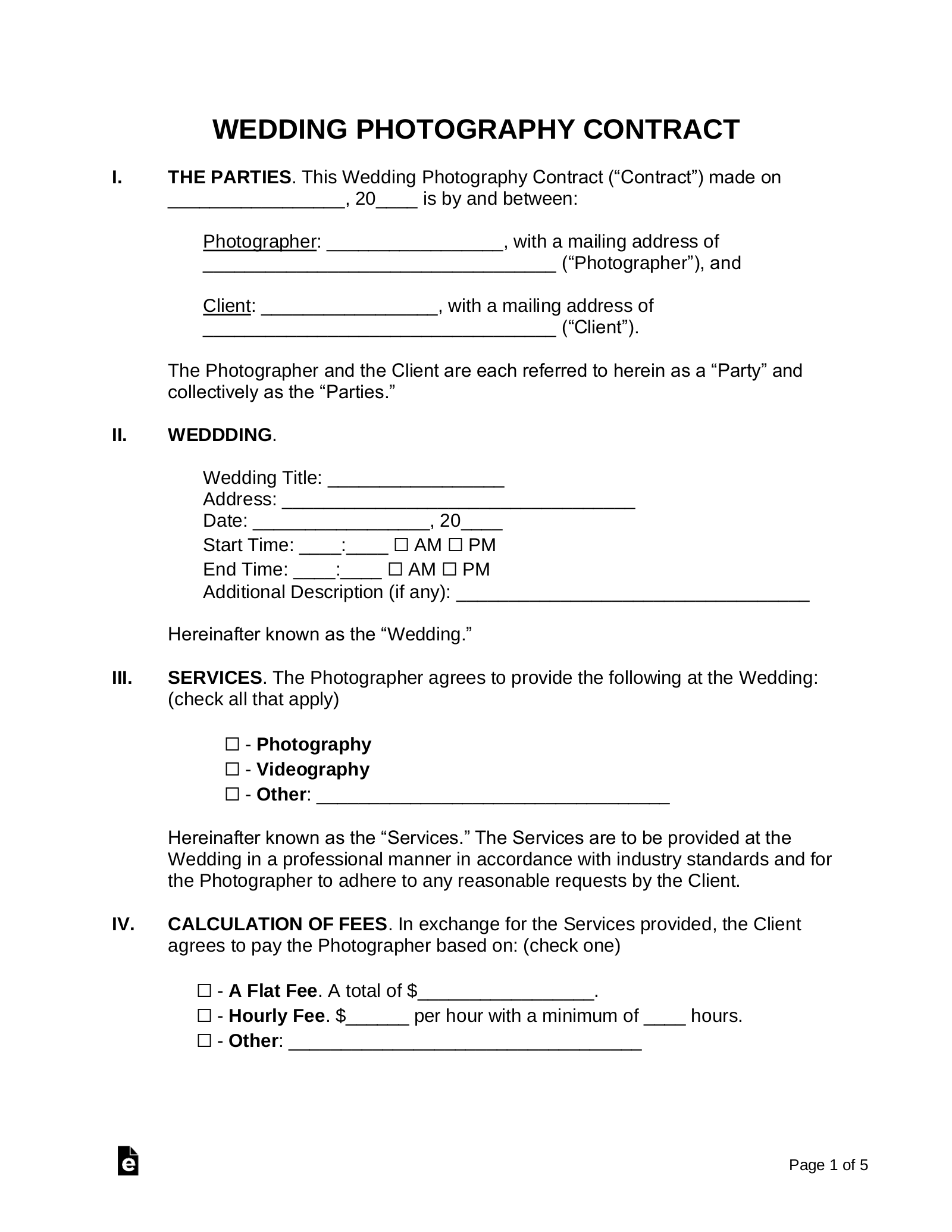 Having a printable editable wedding photography contract can help ensure that both parties are on the same page when it comes to expectations, timelines, and deliverables. This contract can serve as a legal document that protects both you and your photographer in case of any disputes or misunderstandings.