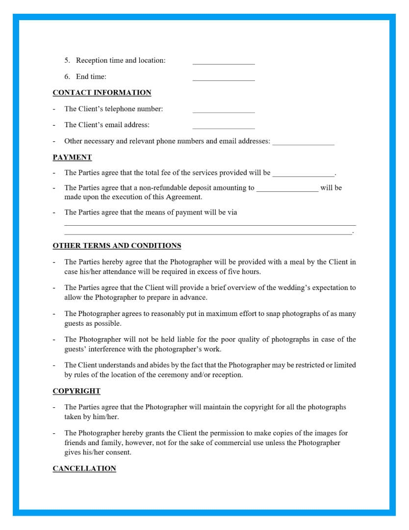 In conclusion, having a printable editable wedding photography contract is essential for ensuring a smooth and successful partnership with your photographer. By clearly outlining expectations, rights, and responsibilities, you can set the stage for a stress-free and enjoyable wedding day. So, take the time to create a comprehensive contract that works for both you and your photographer!