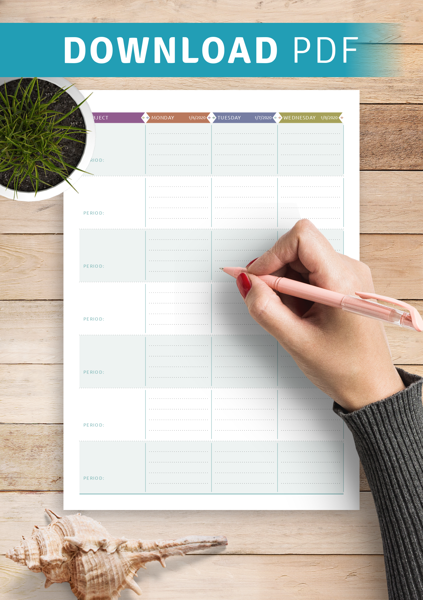 Download Printable Week Lesson Plan Casual Style Full Week PDF