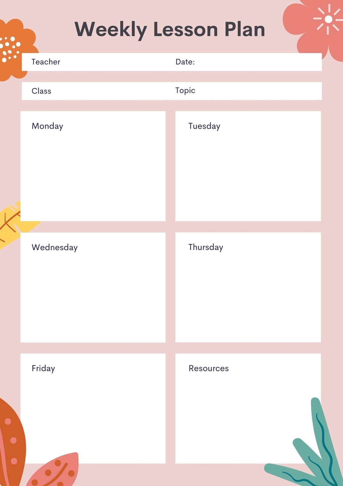 Free Printable Customizable Weekly Lesson Plan Templates Canva
