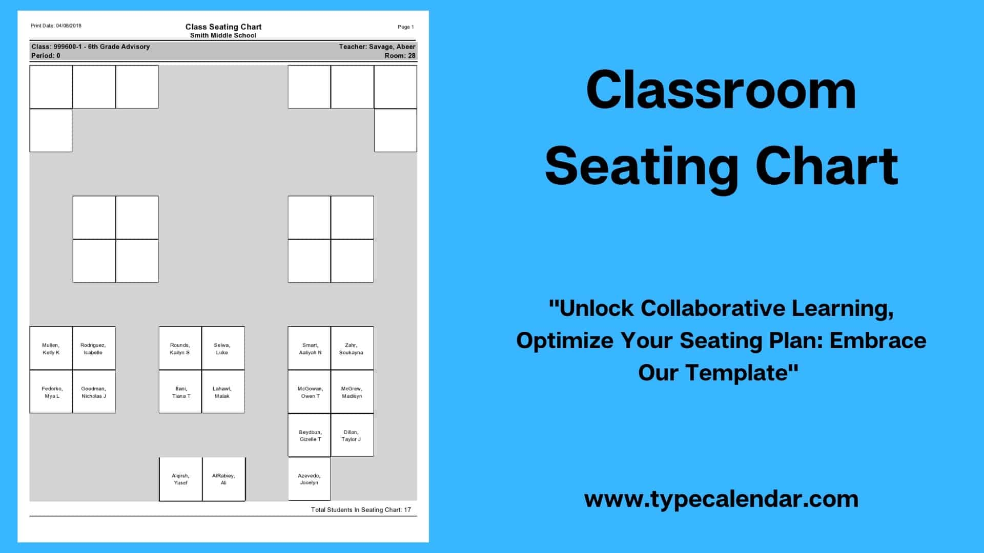 Printable Free Editable Classroom Seating Chart