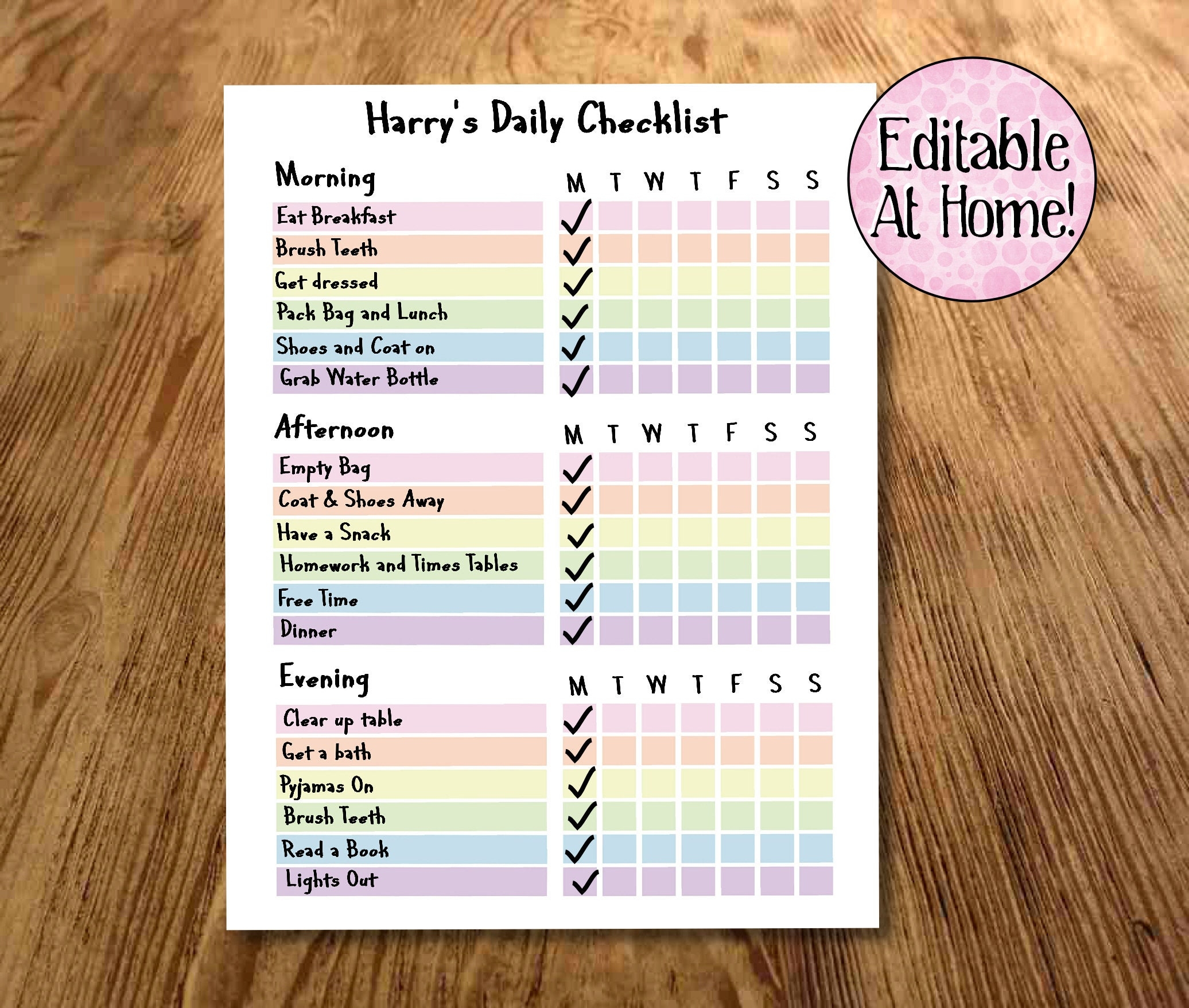 Kids Routine Checklist Edit At Home Printable File Kids Daily Planner Childrens Routine Chart DIY Weekly Checklist Kids Daily Rhythm Etsy