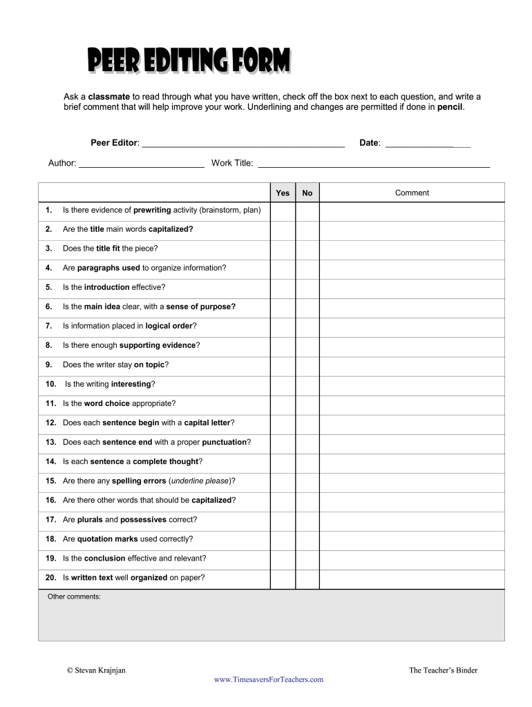Peer Editing Checklist High School Pdf Fill Online Printable Fillable Blank PdfFiller