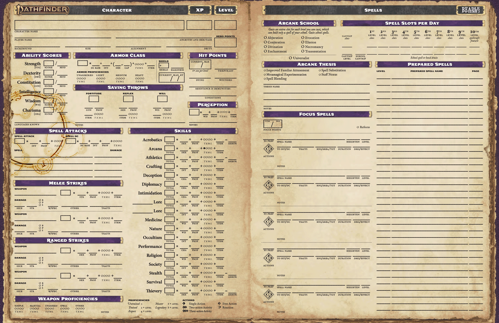 The official character sheet from Paizo is designed with players in mind, featuring a clean layout that is easy to fill out and understand. From your character’s name and class to their skills and spells, everything you need is right at your fingertips.