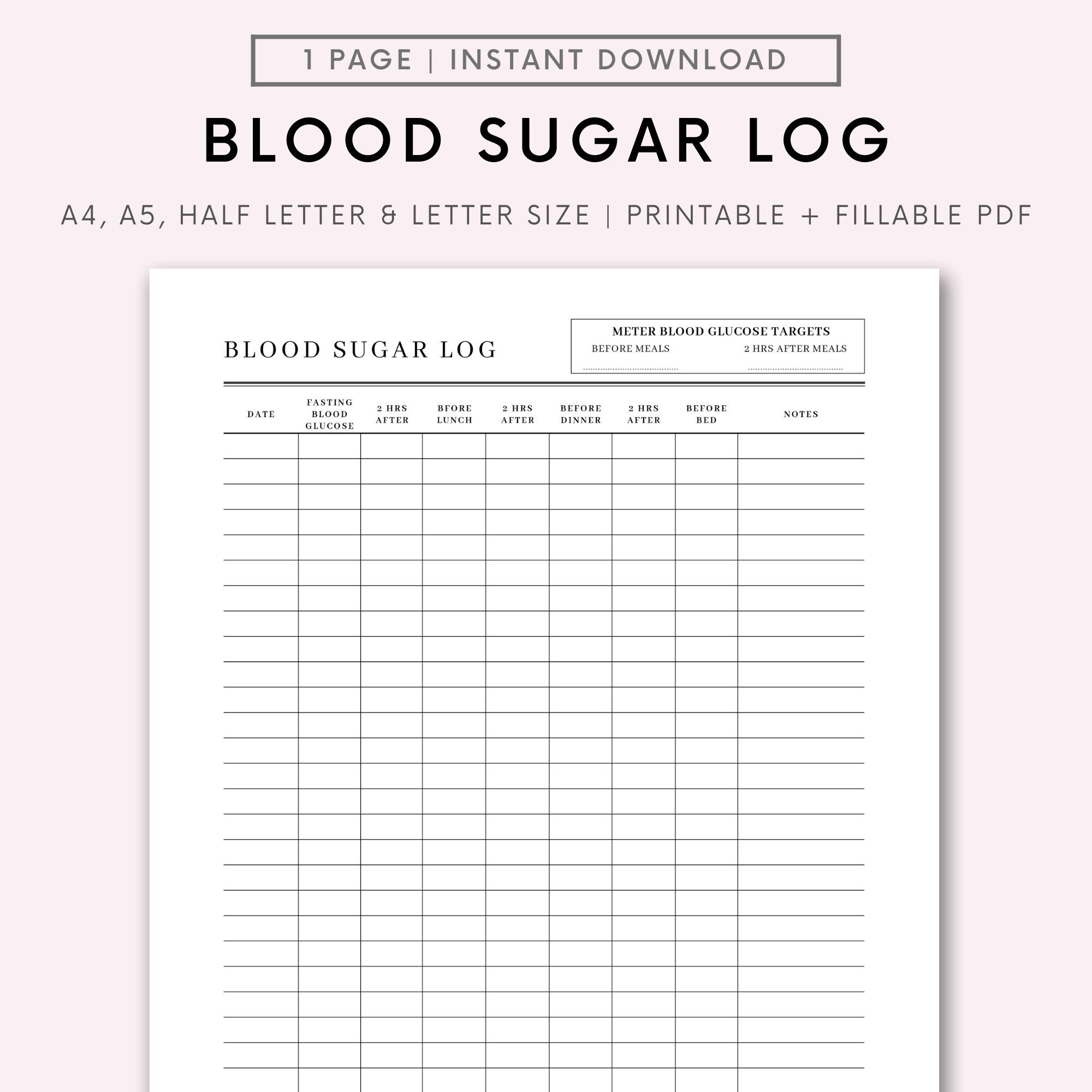 Blood Sugar Log Printable Blood Sugar Tracker Editable Printable Blood Glucose Tracker Diabetic Log Blood Sugar Log Diabetes Tracker Etsy