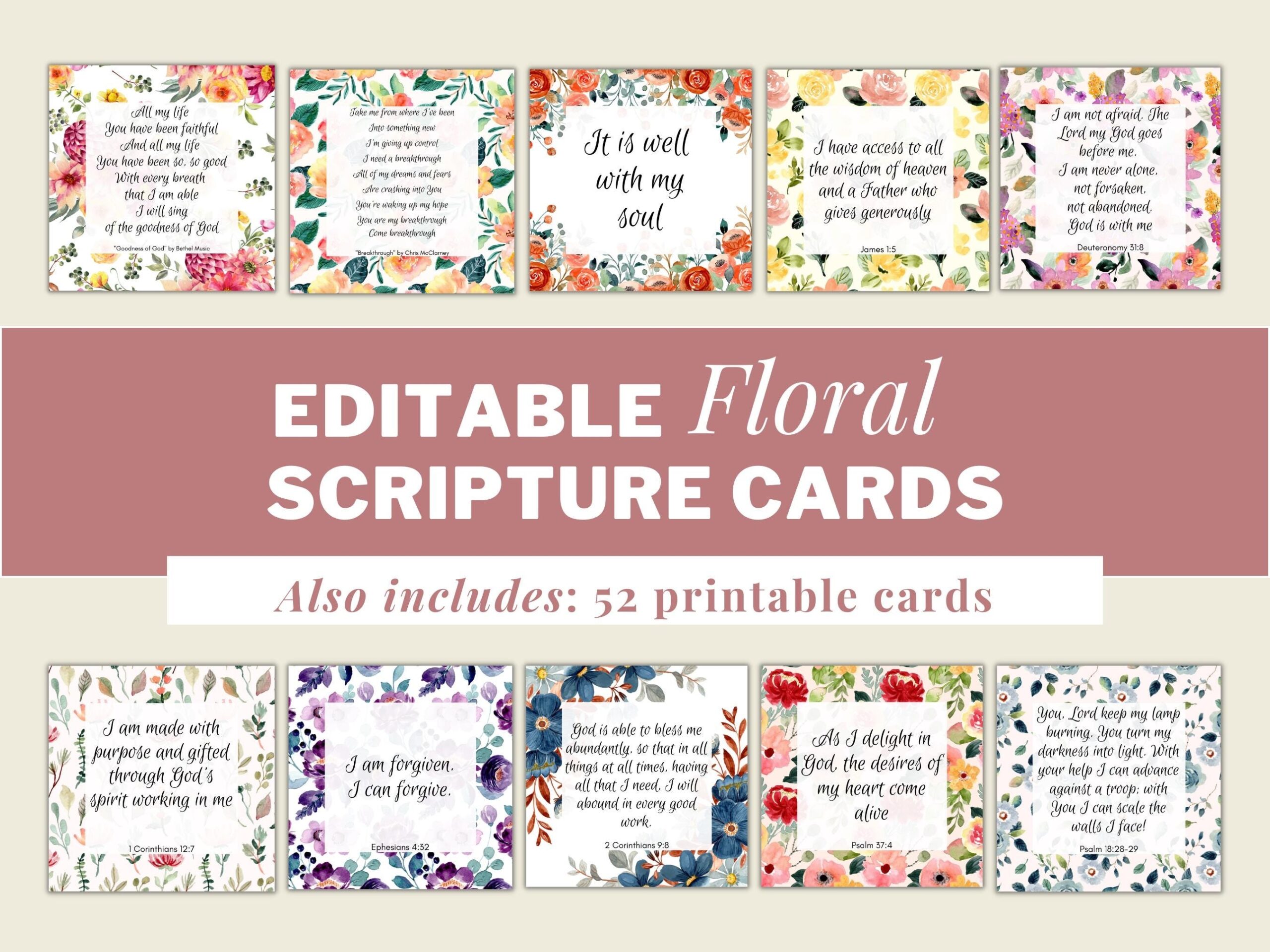 Editable Printable Scripture Cards Personalized Scripture Cards Prayer Cards Bible Verse Cards Inspirational Cards Watercolor Flower Etsy