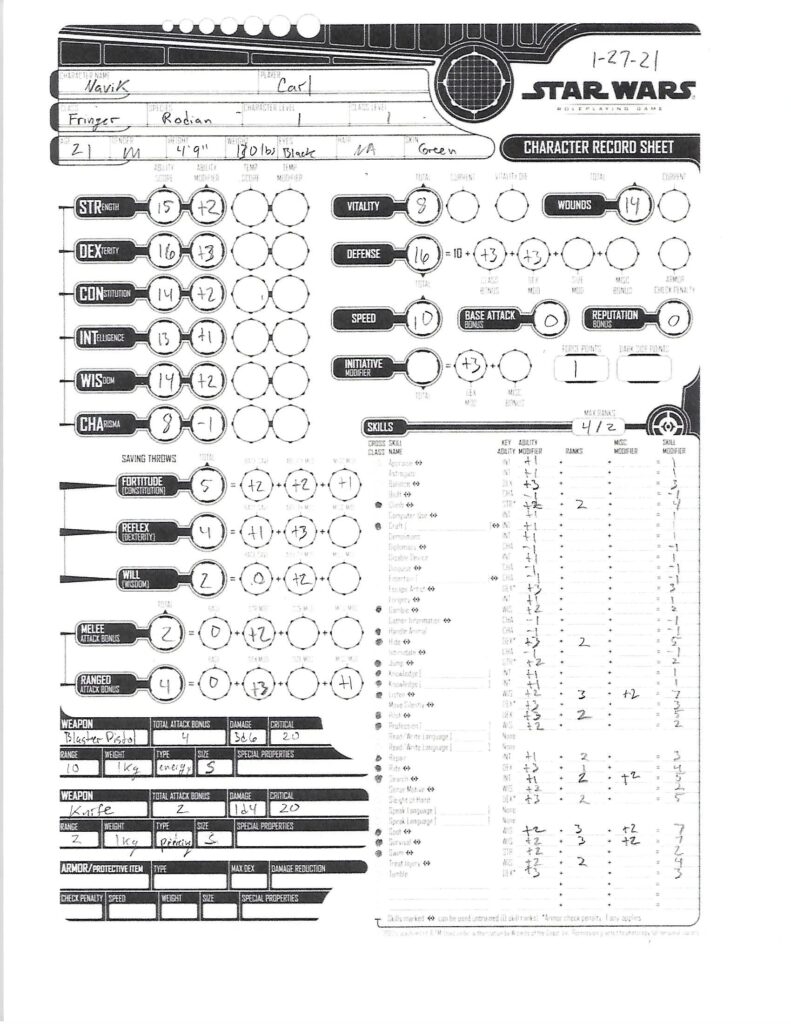 Printable Star Wars Saga Edition Rpg Character Sheet