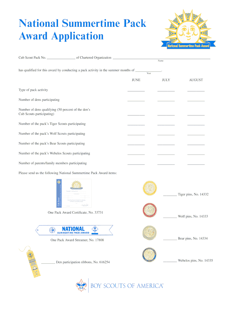National Summertime Pack Award Fill Out Sign Online DocHub