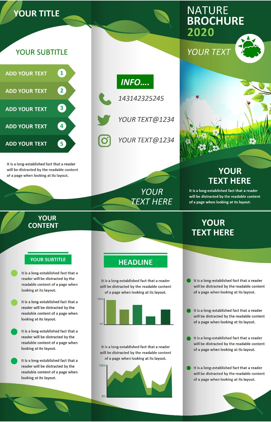 Our printable tri-fold brochure template features a fresh green color scheme that is both visually appealing and versatile. You can easily add your own images, text, and branding elements to make it uniquely yours.