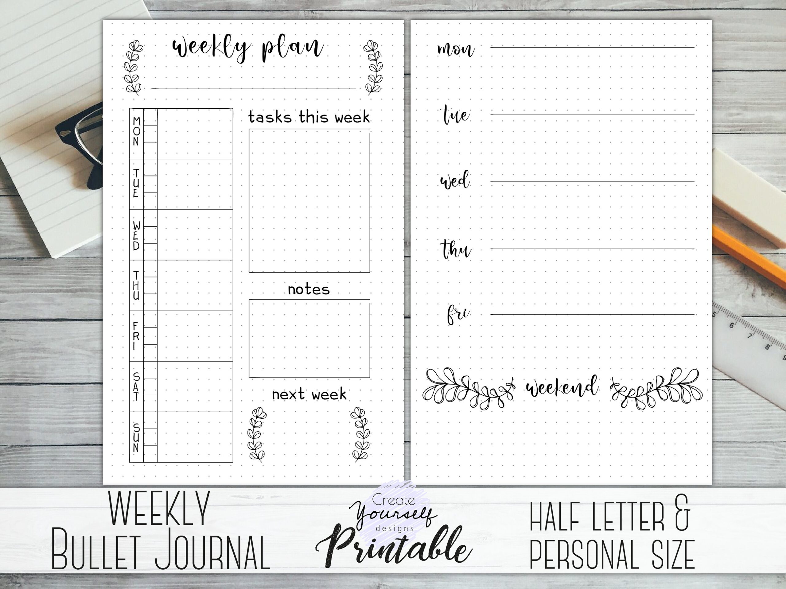 Weekly Bullet Journal Printable Weekly Planner Printable Bullet Journal Dot Grid Journal Planner Insert Pre Made Dotted Journal Etsy