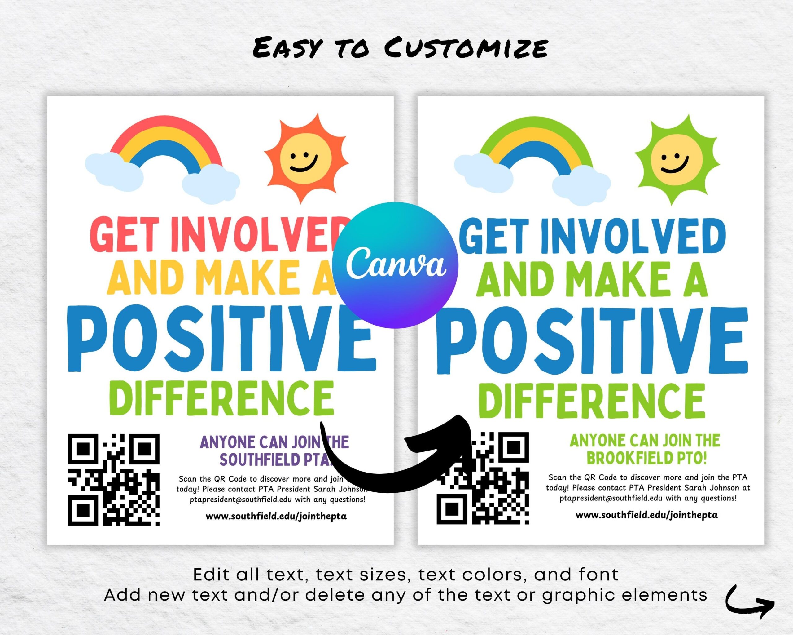 Editable PTA Flyer Template Positive Difference School Recruitment Poster Etsy