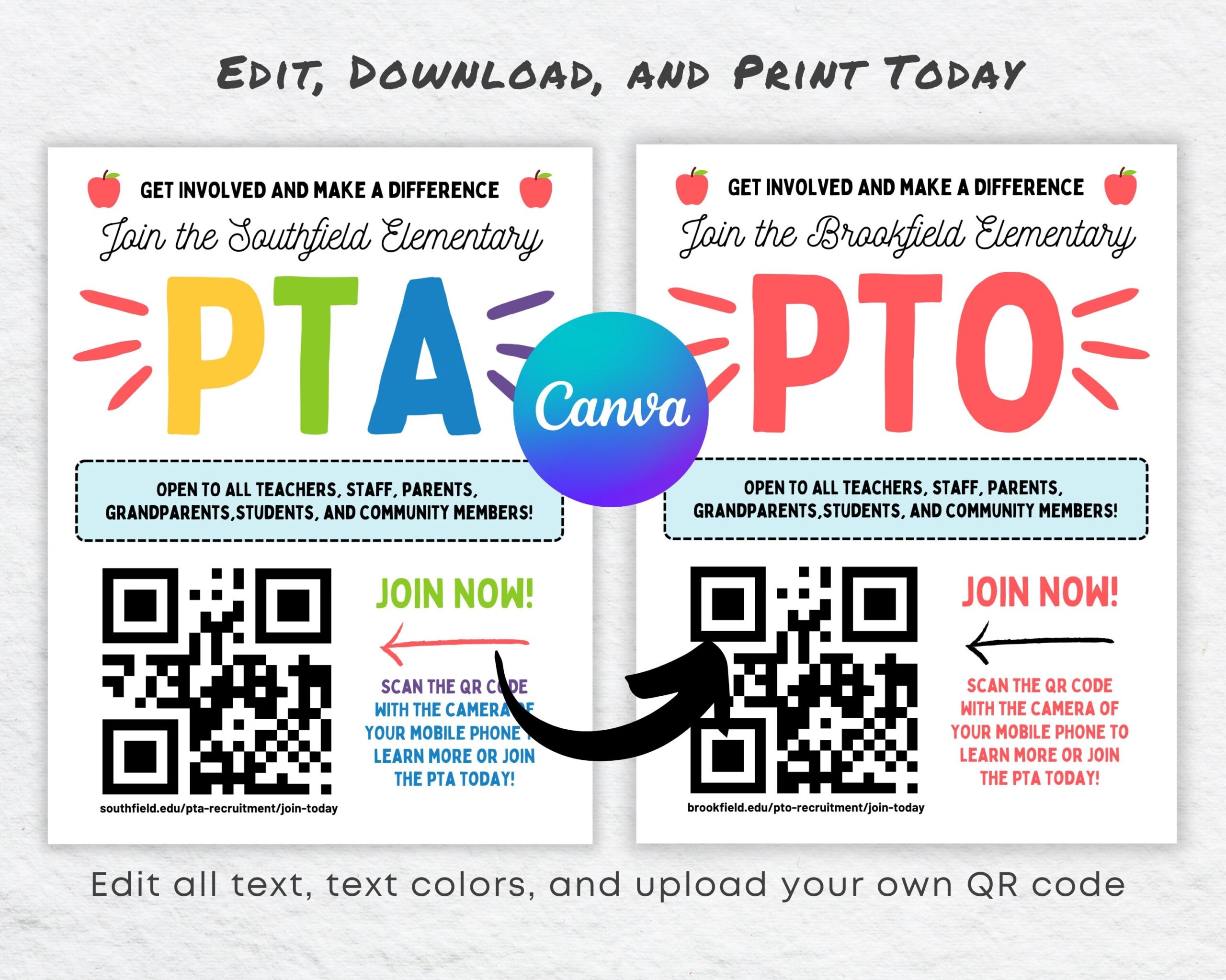 Join The PTA Or PTO Flyer Editable Template W qr Code For School Volunteer Recruitment Etsy Hong Kong