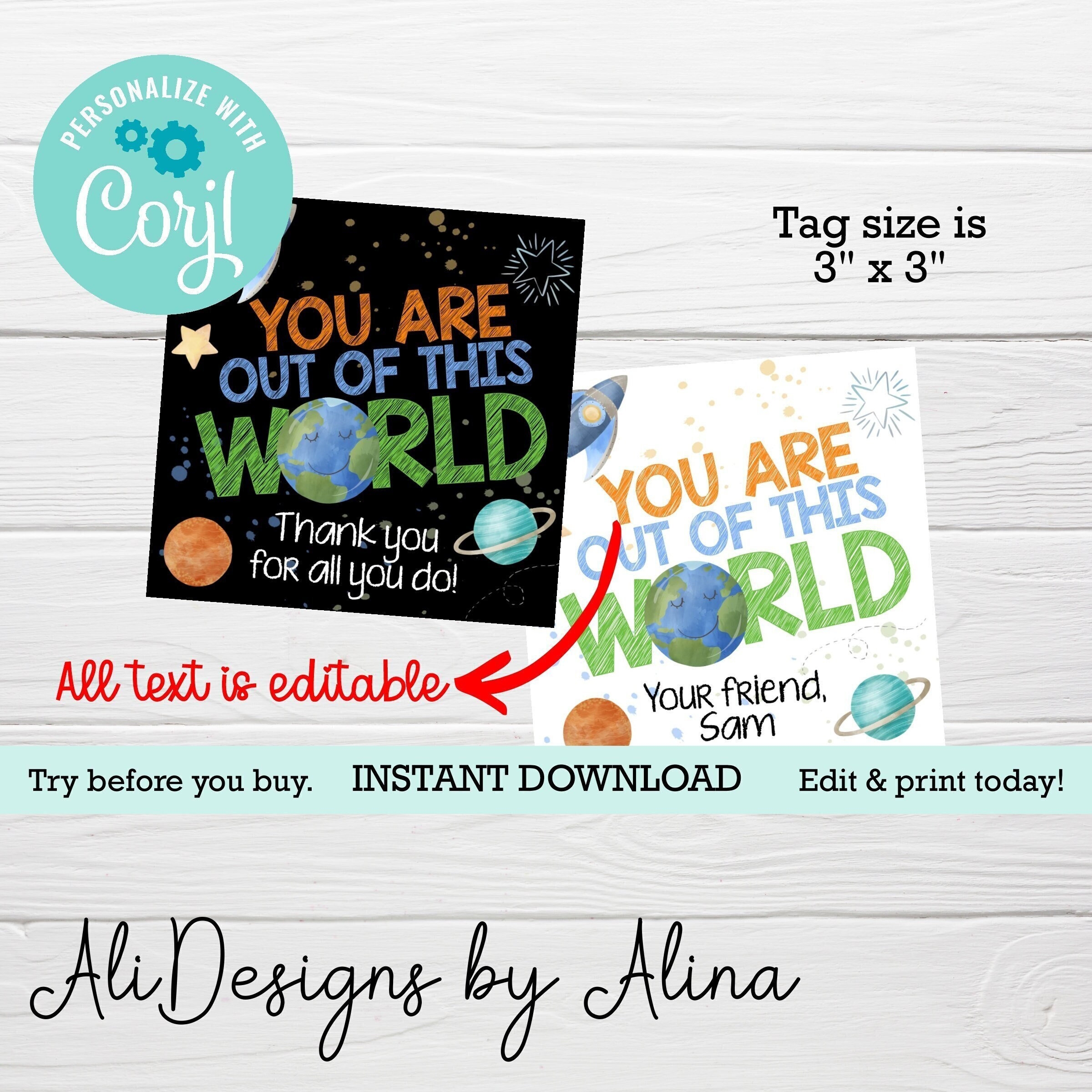 You Are Out Of This World Printable Favor Tags EDITABLE Template PTA PTO Teacher And Staff Appreciation Week Open House Tag First Day Etsy