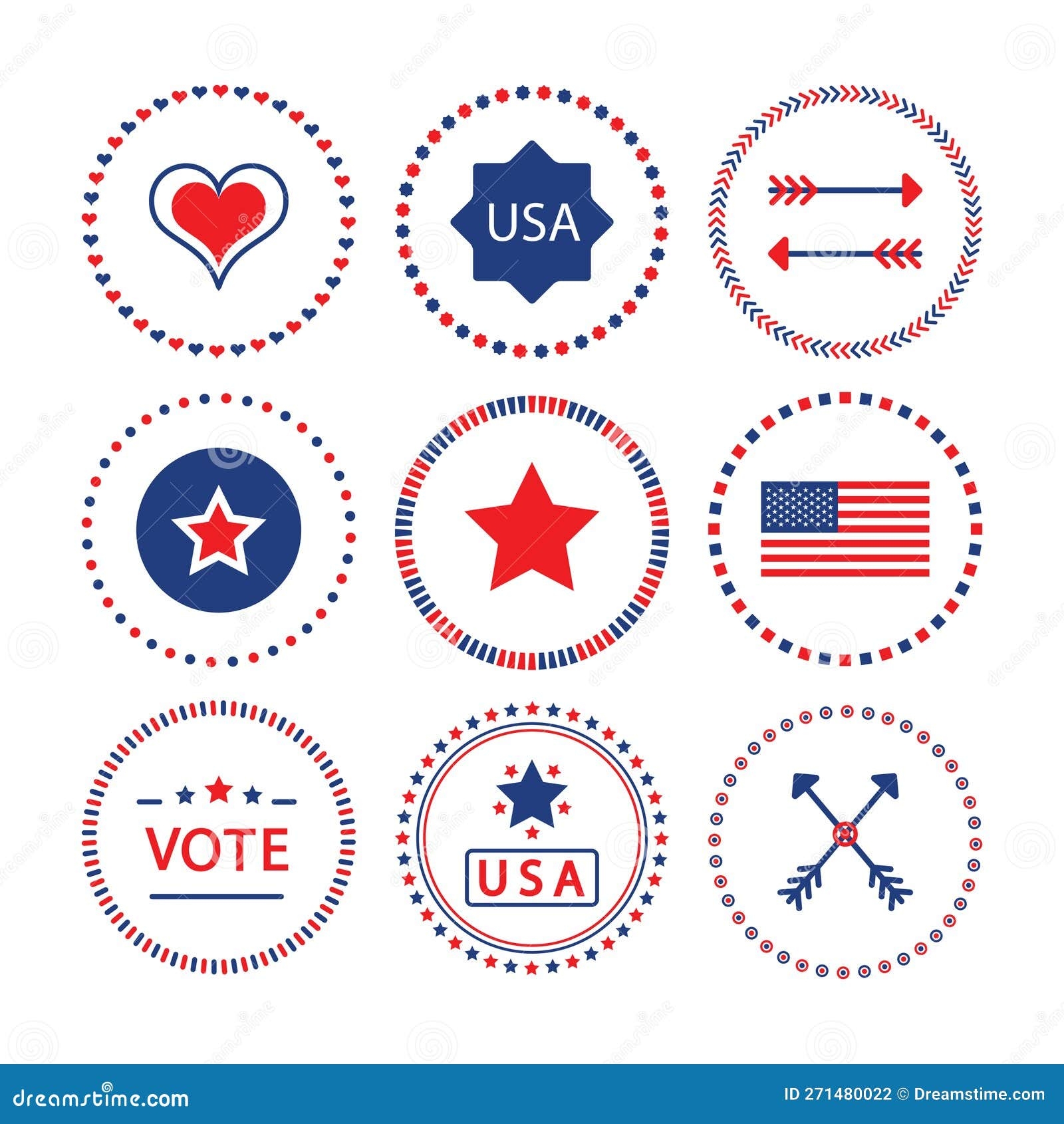 Red And Blue American Circle Border Pattern Emblems And Banners Set Template On White Stock Vector Illustration Of Round Pattern 271480022