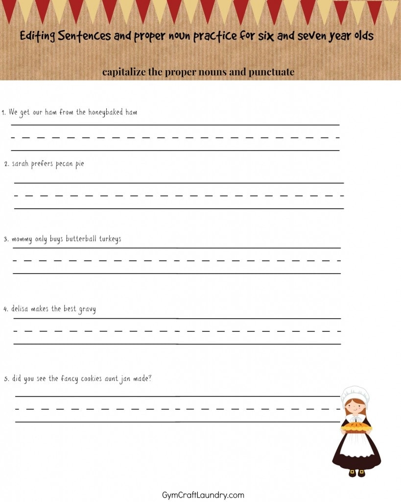 Thanksgiving Proper Nouns And Editing With Free Printable Worksheet Gym Craft Laundry