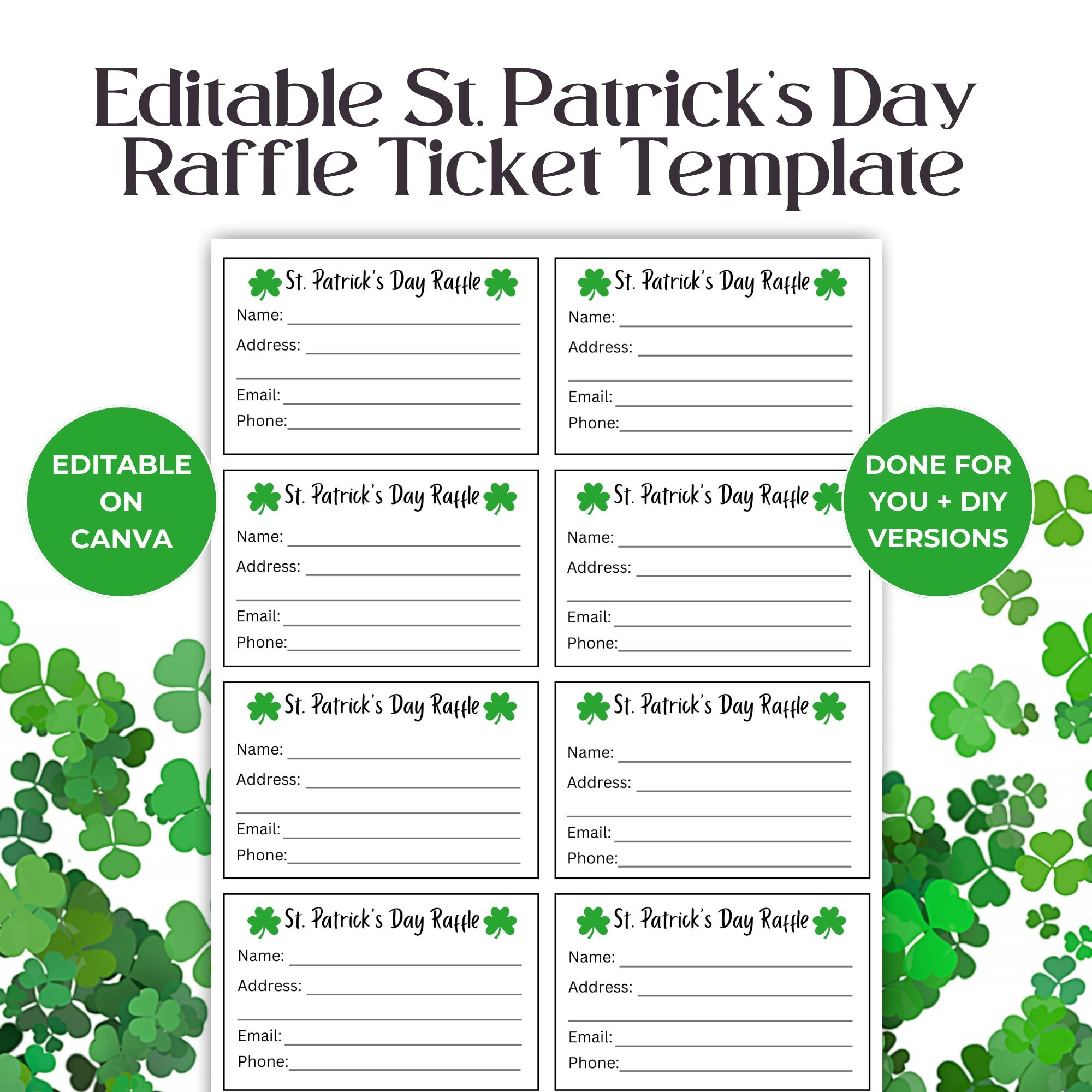 Editable St Patricks Day Raffle Ticket Template Fundraising Event School PTO Fundraiser RAF01 Etsy UK