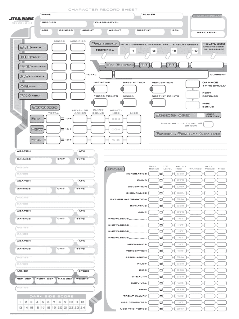Are you a fan of Star Wars Saga Edition and looking for a printable character sheet to enhance your gaming experience? Look no further! We’ve got you covered with a downloadable character sheet that will take your gameplay to the next level.
