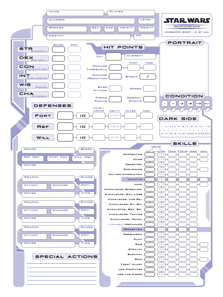 Download our printable character sheet today and take your Star Wars Saga Edition gameplay to the next level. Whether you’re embarking on an epic adventure or engaging in thrilling battles, our character sheet will be your trusty companion along the way.
