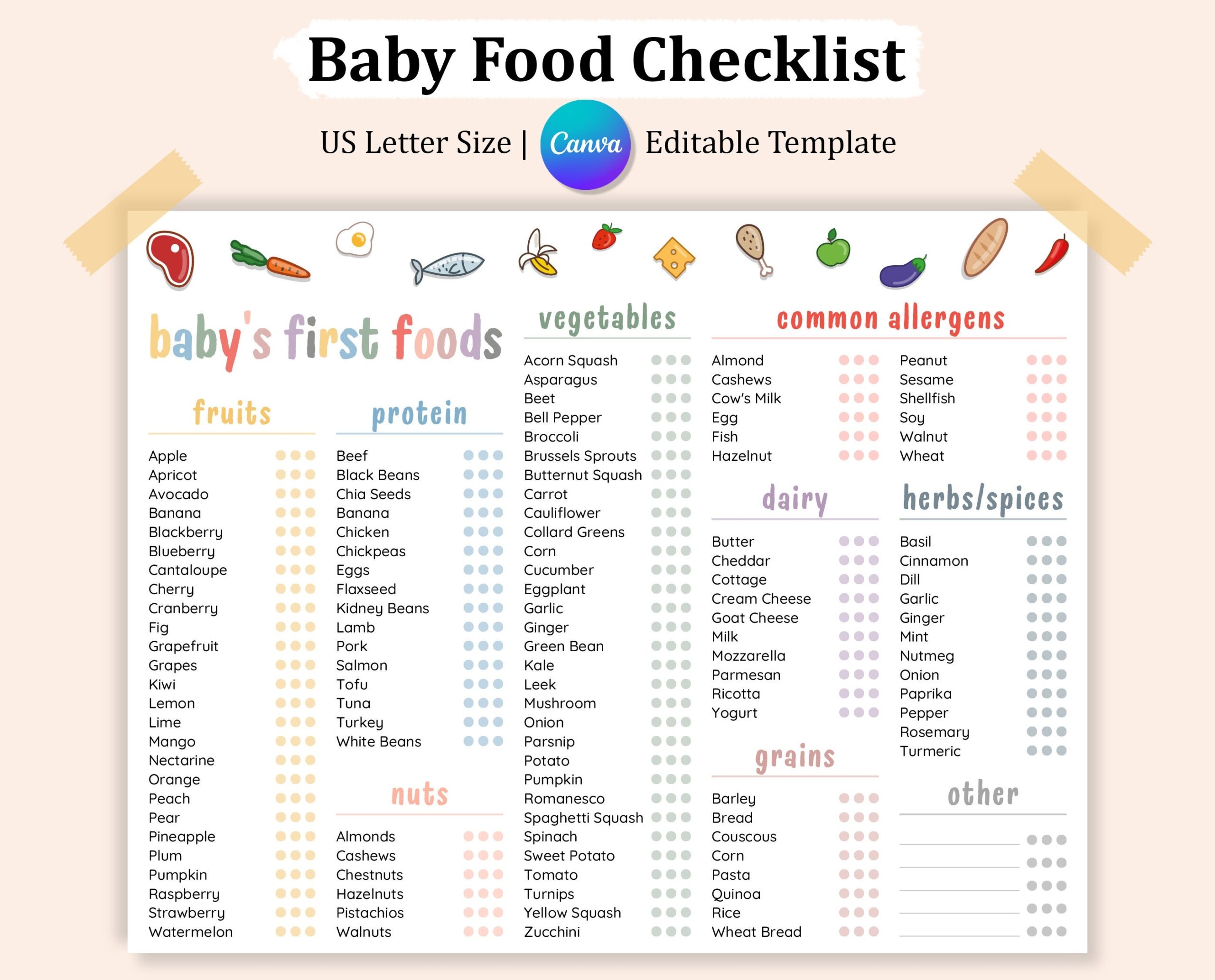 Baby s First 100 Foods Checklist Editable Weaning Chart PDF Etsy