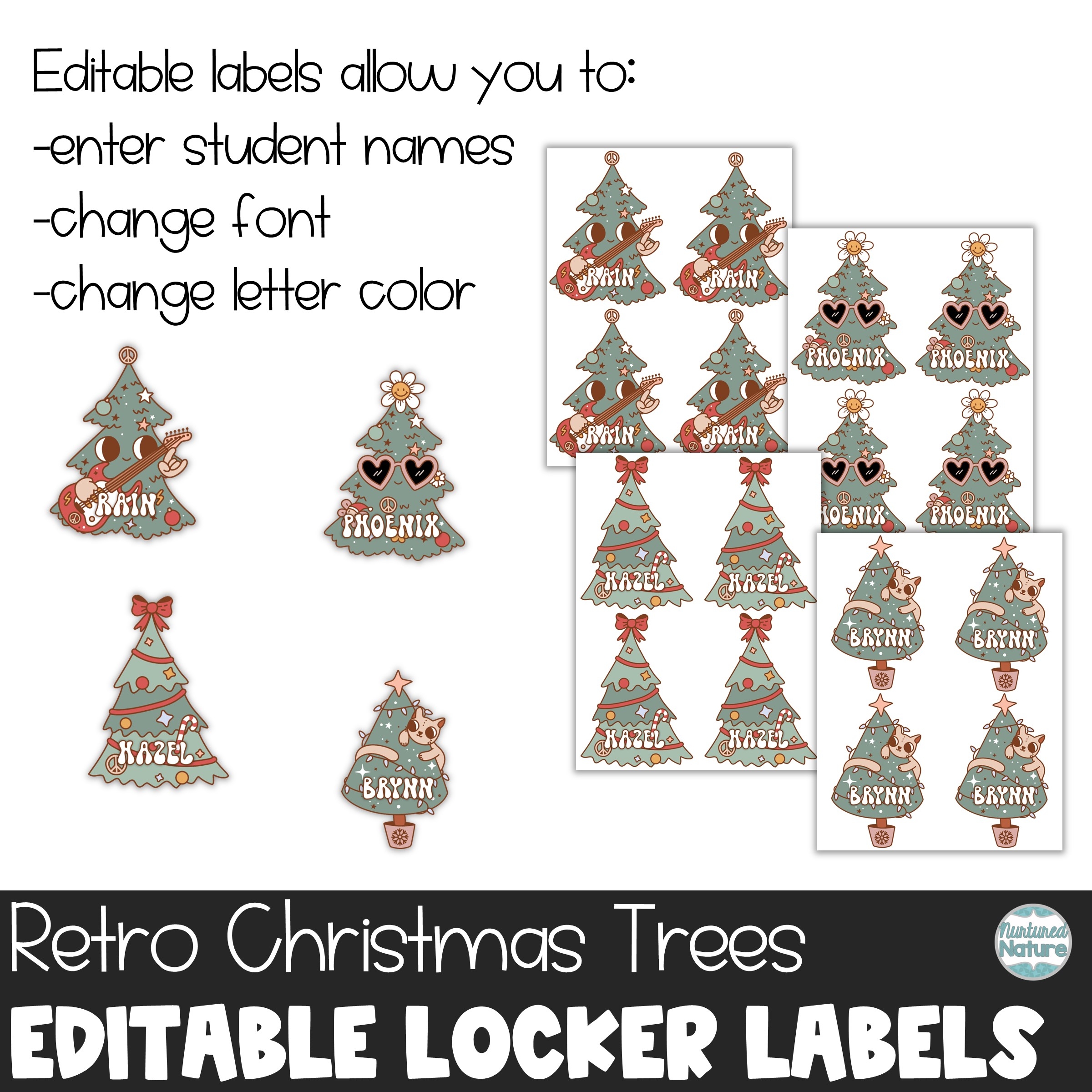Christmas Name Tags Editable Locker Labels Or Cubby Tags Retro Trees Made By Teachers