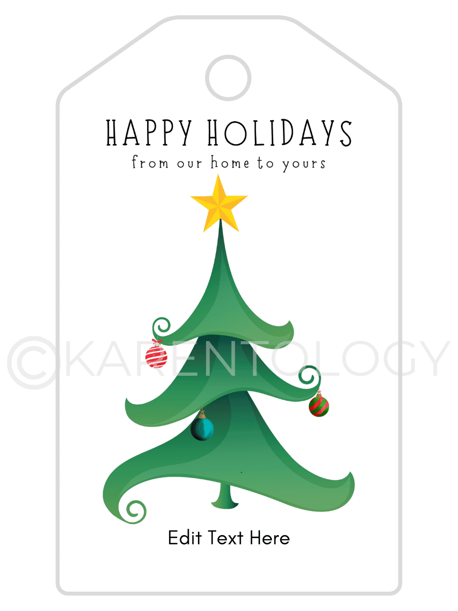 Christmas Tree Gift Tag Instant Download Editable Printable KARENTOLOGY