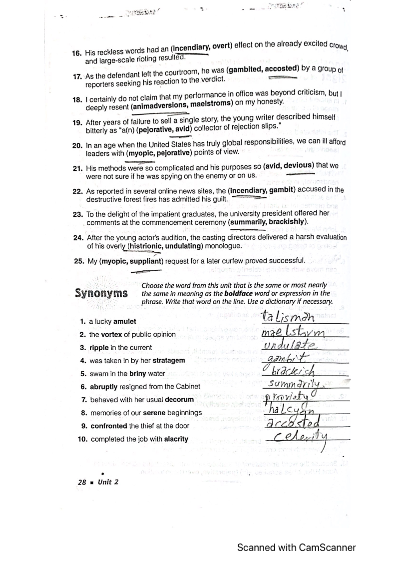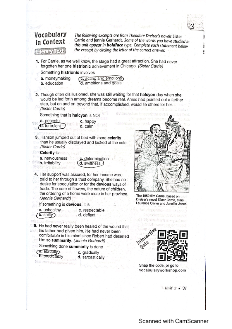 Sadlier Vocabulary Workshop Enriched Edition Level G Unit 2 Answers