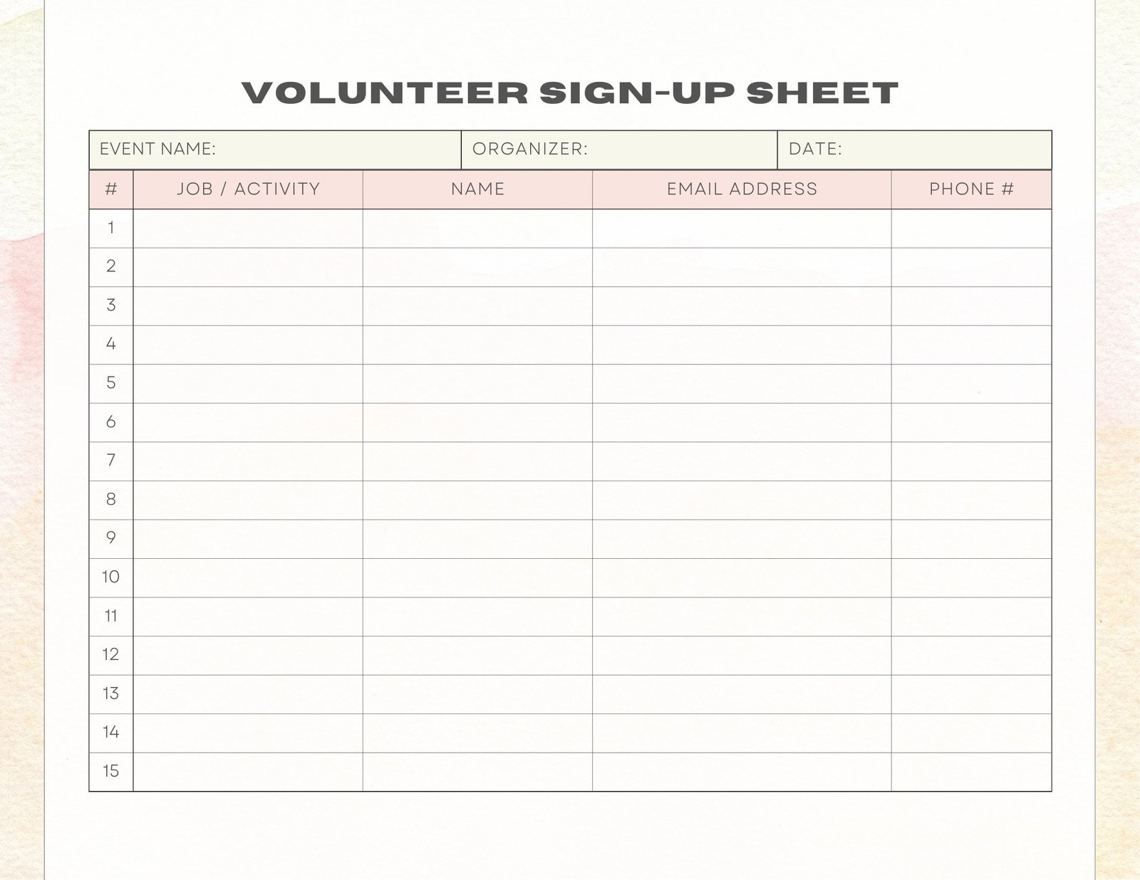 Looking for volunteer sign-up sheets that are free, printable, and editable? You’re in luck! We’ve got just what you need to make organizing your next event a breeze. Whether you’re planning a charity fundraiser, community clean-up, or school event, having a sign-up sheet is essential.