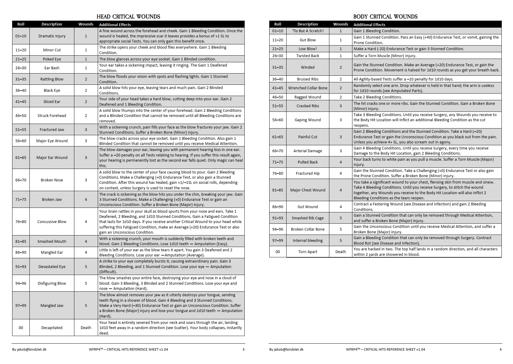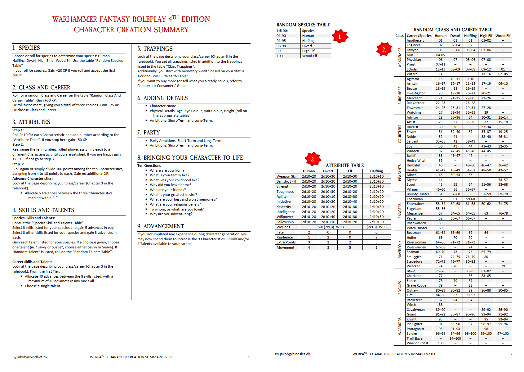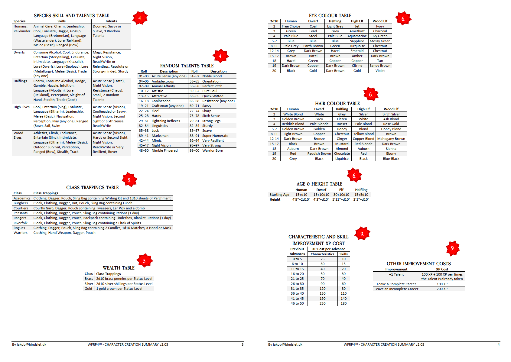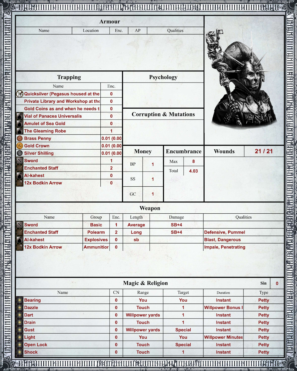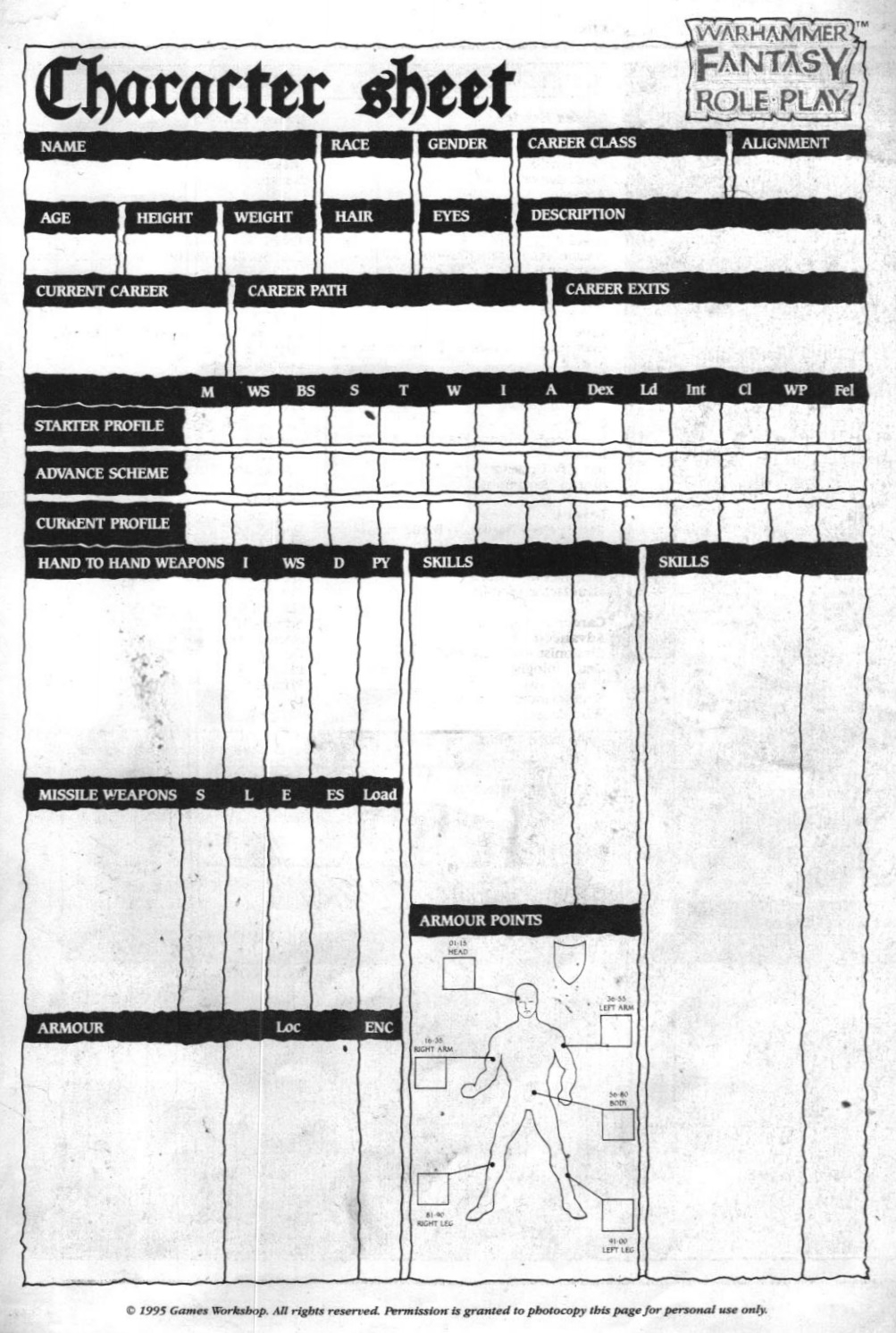 Warhammer Fantasy Roleplay 4th Edition Character Sheet Printable