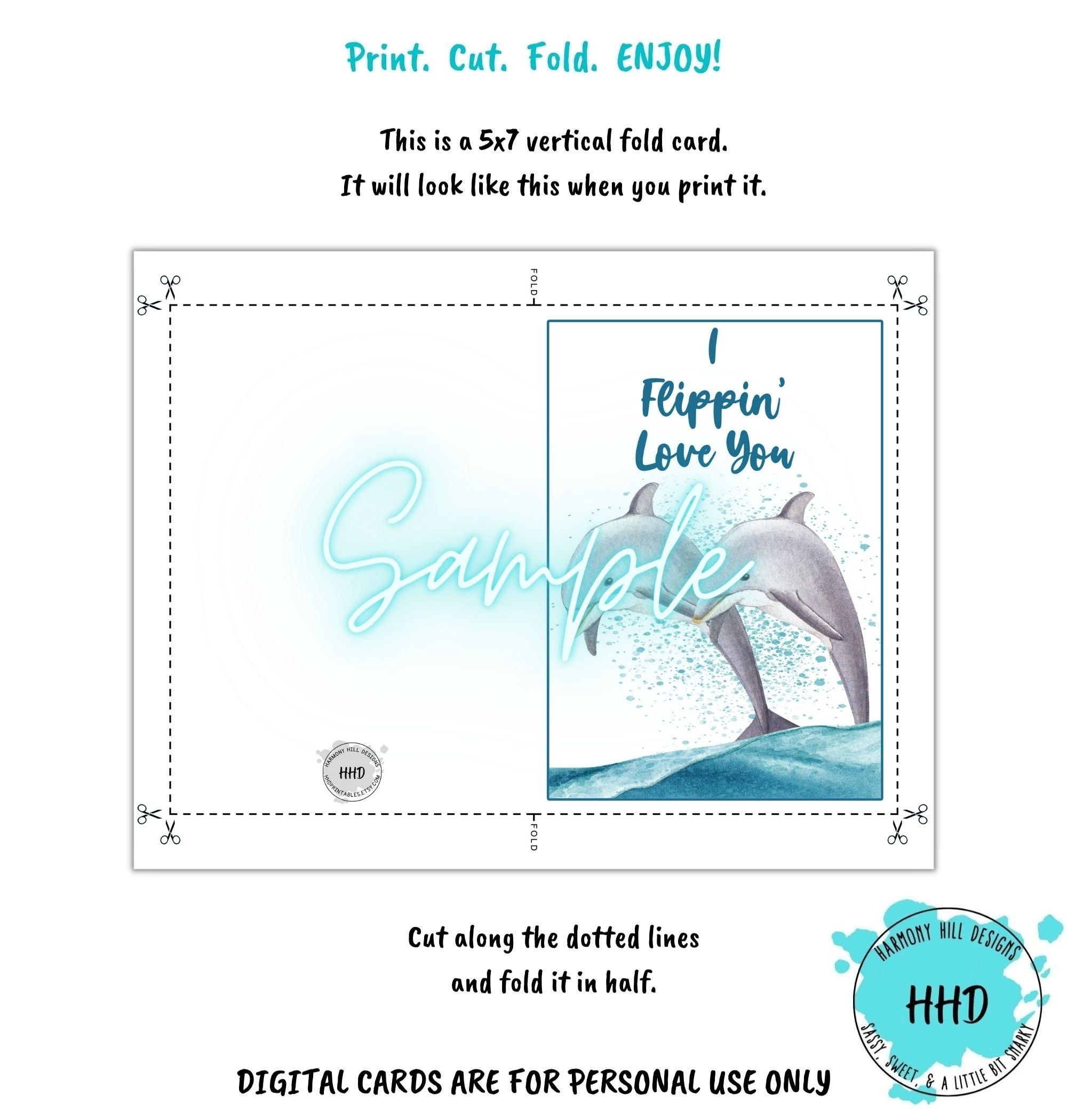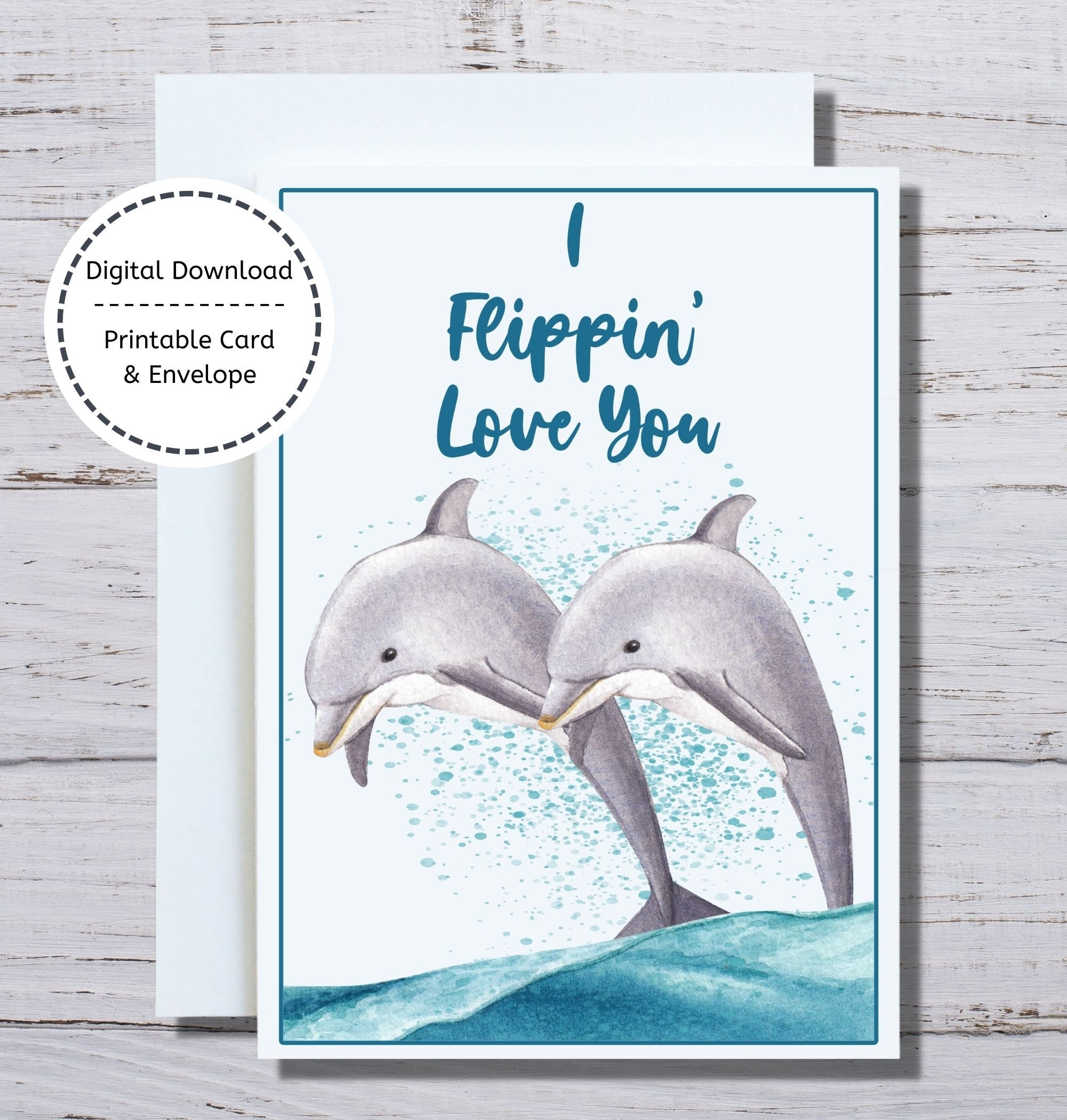 Dolphins Printable Card I Flippin Love You Card Dolphin Valentine Card 5×7 Printable Card Love You Card Dolphin Theme Card Vday Card Etsy