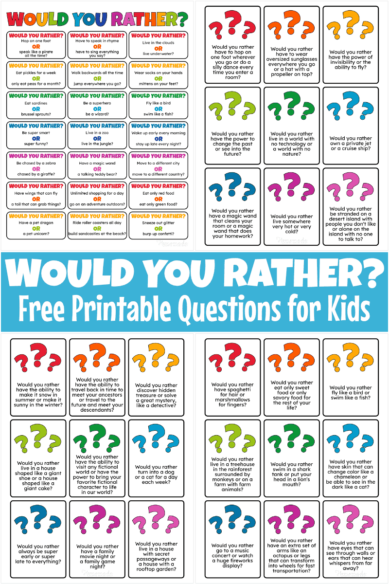 200 Fun Thought Provoking Would You Rather Questions For Kids