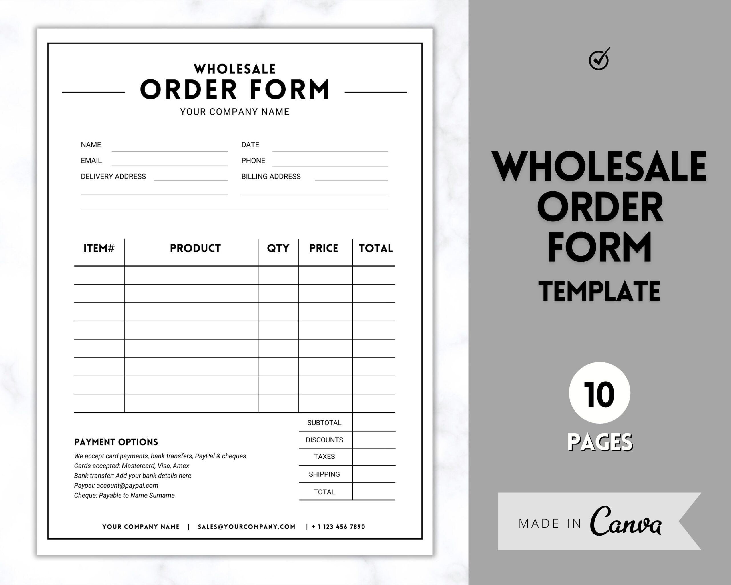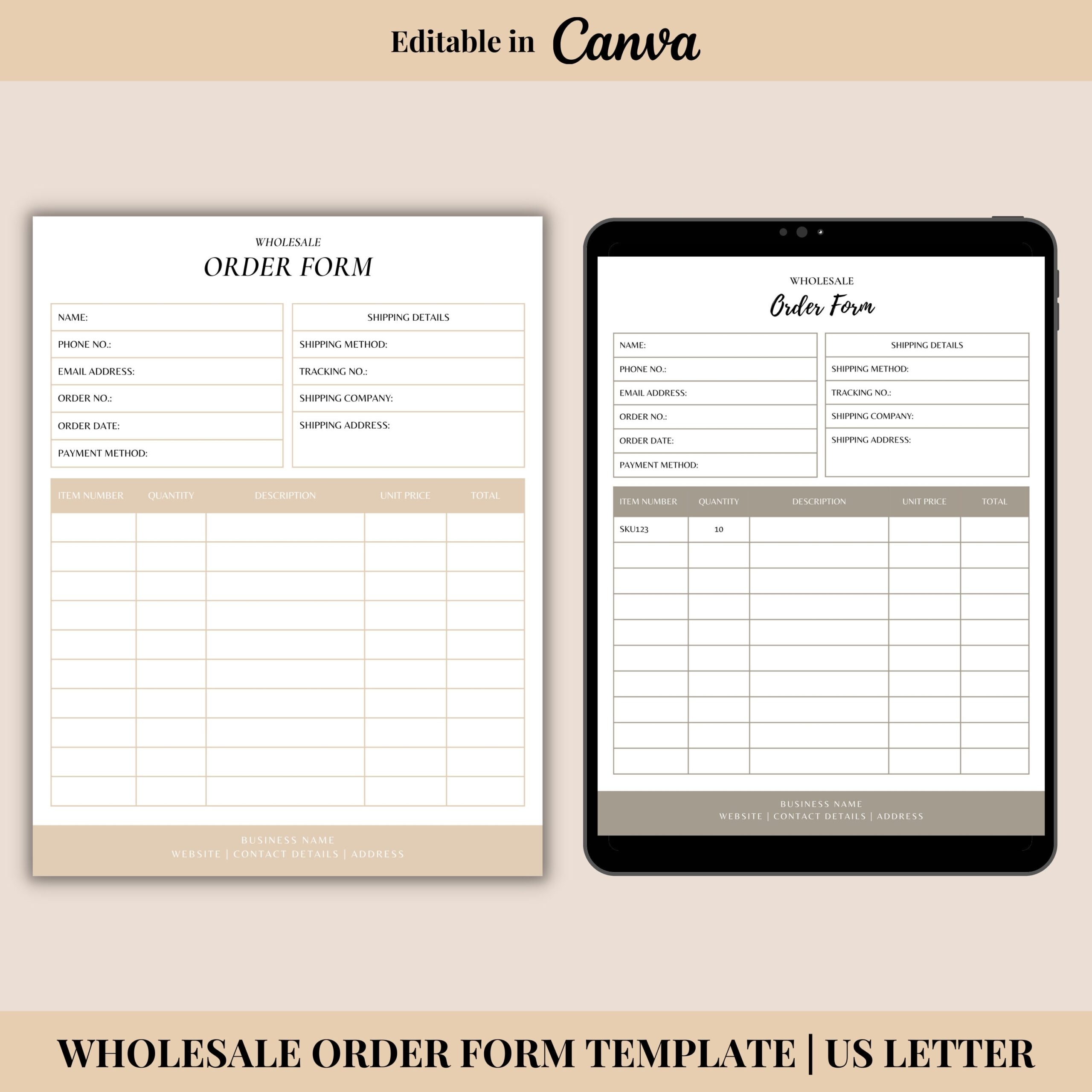 Wholesale Order Form Template Instant Download Editable Wholesale Order Sheet Canva Order Form Canva Template Order Form Wholesale Etsy