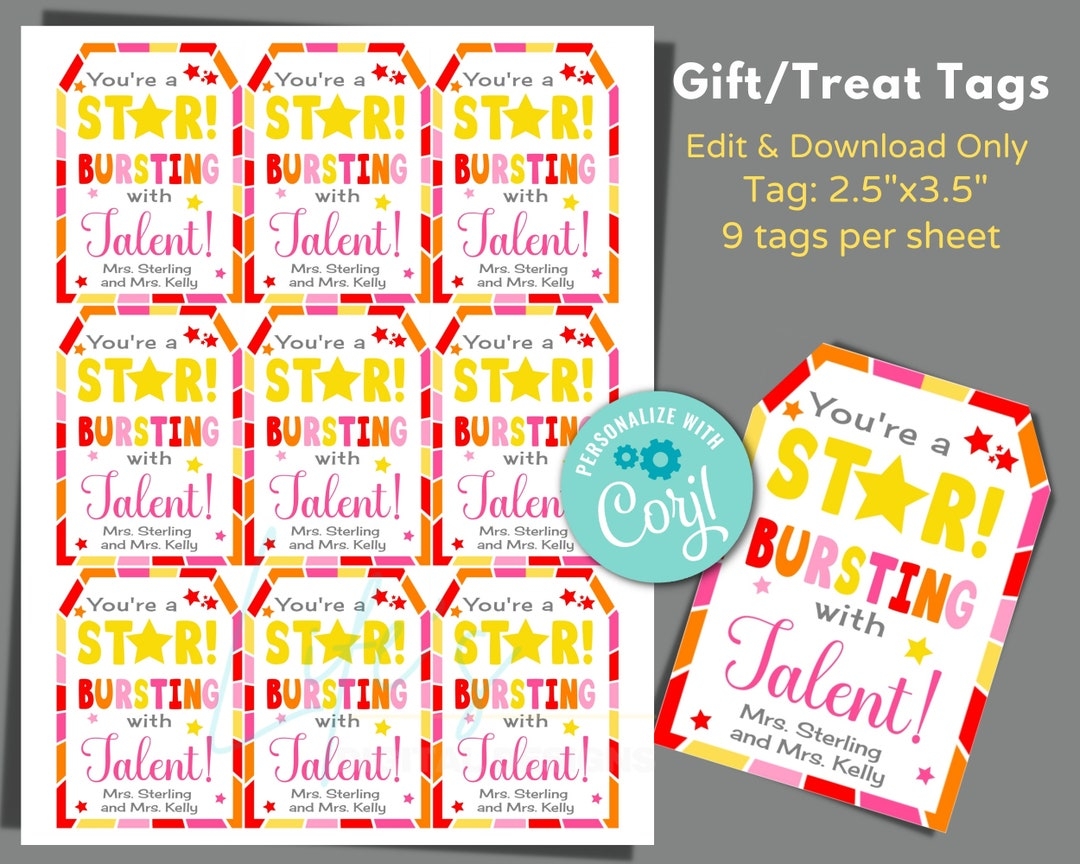 You re A Star Bursting With Talent Tags To Edit In Corjl Download And Print Team Gift Tags Employee Gift Tag Dance Group Gift Tags Etsy